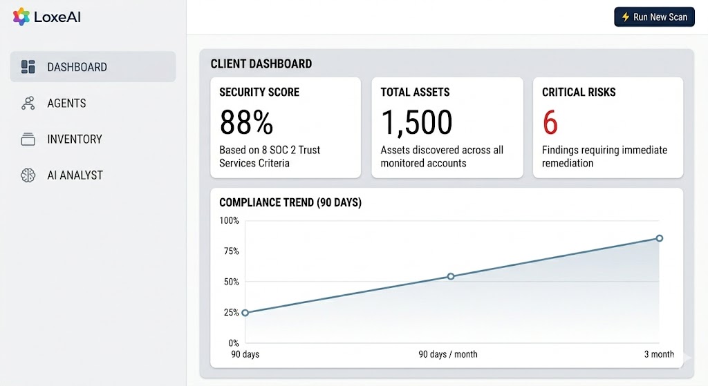 Automated SOC 2 compliance with an AI security analyst that scans cloud posture and streams Terraform remediation.